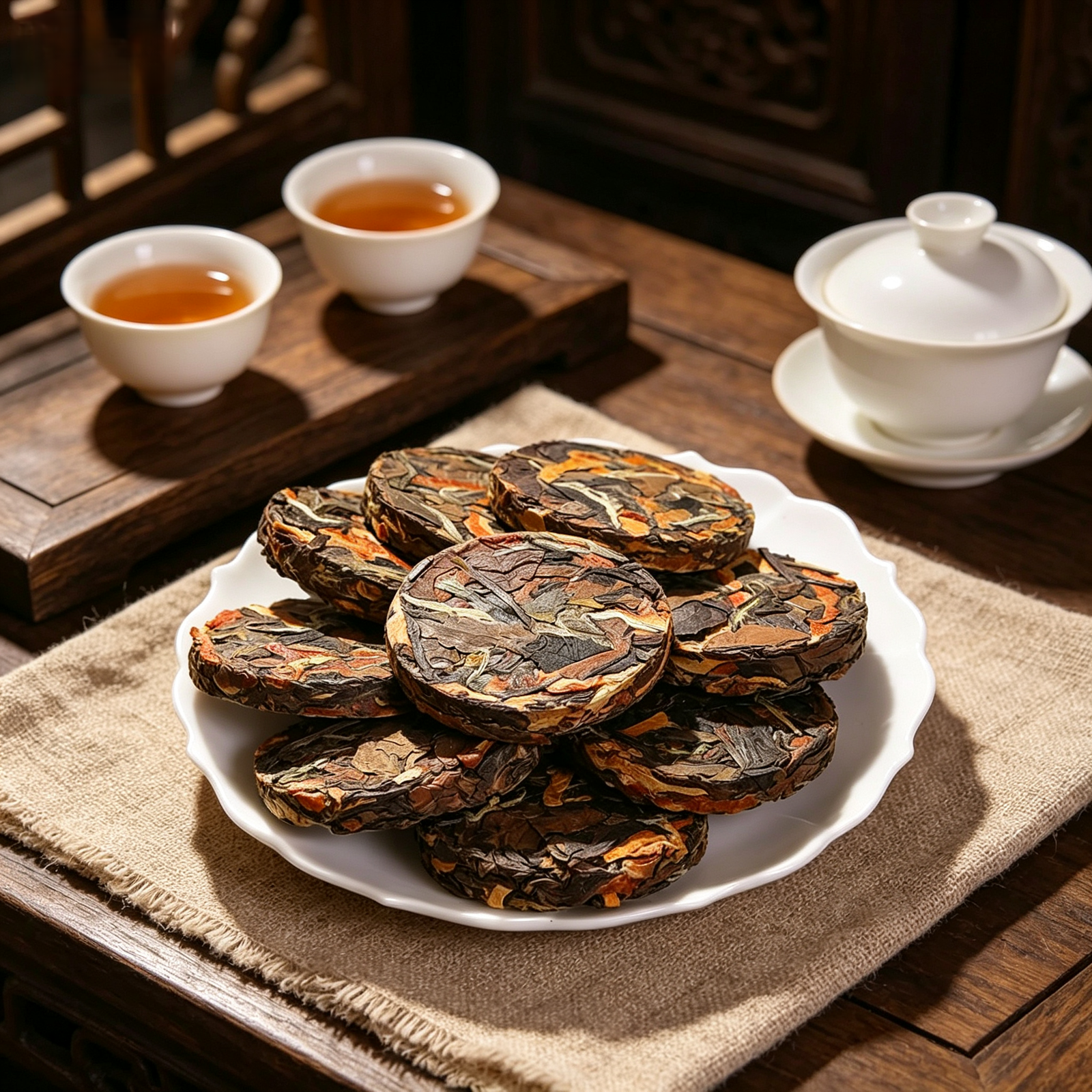 Our Chenpi White Tea Cakes offer more than just exquisite flavor—they come packed with natural benefits. The white tea is rich in antioxidants like polyphenols that neutralize free radicals and support cardiovascular health. Chenpi, laden with volatile oils, soothes digestion, reduces bloating, and alleviates throat irritation. Together, they provide gentle daily nourishment, help ease stress, and foster relaxation with their calming aroma and warm tea infusion. It’s the ultimate natural remedy packed into every cup you brew.