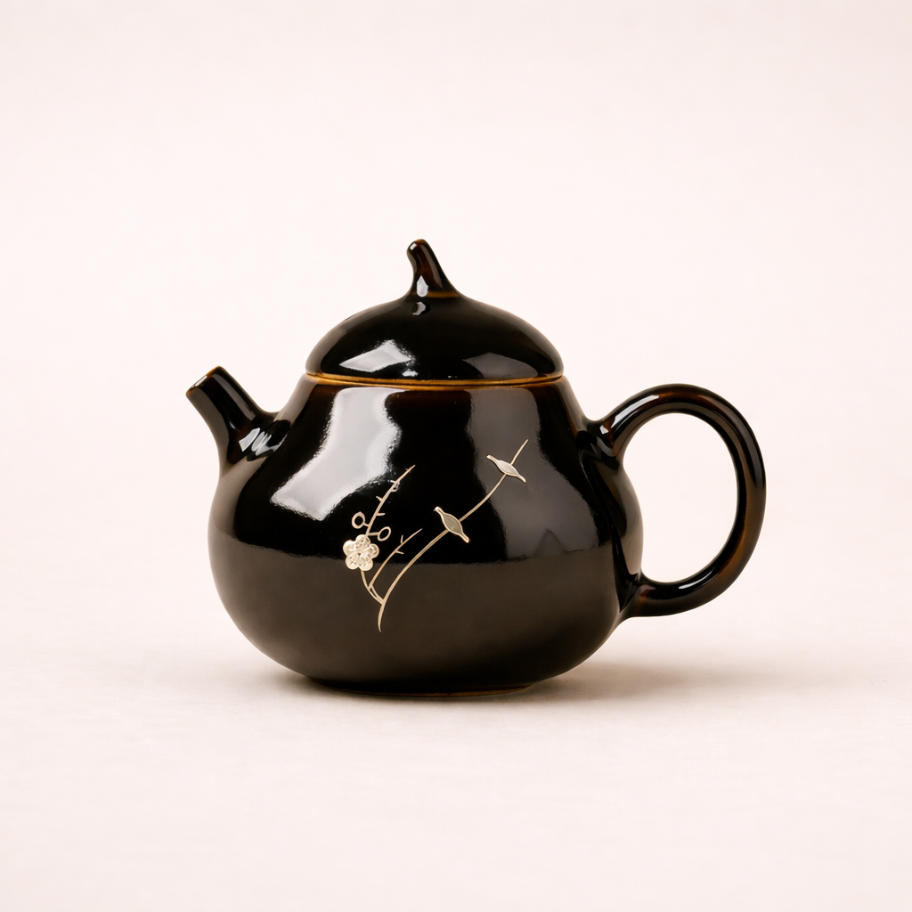 Elegant Teapots for a refined Chinese tea set, featuring pear-shaped design, black gold glaze, and timeless handcrafted beauty.