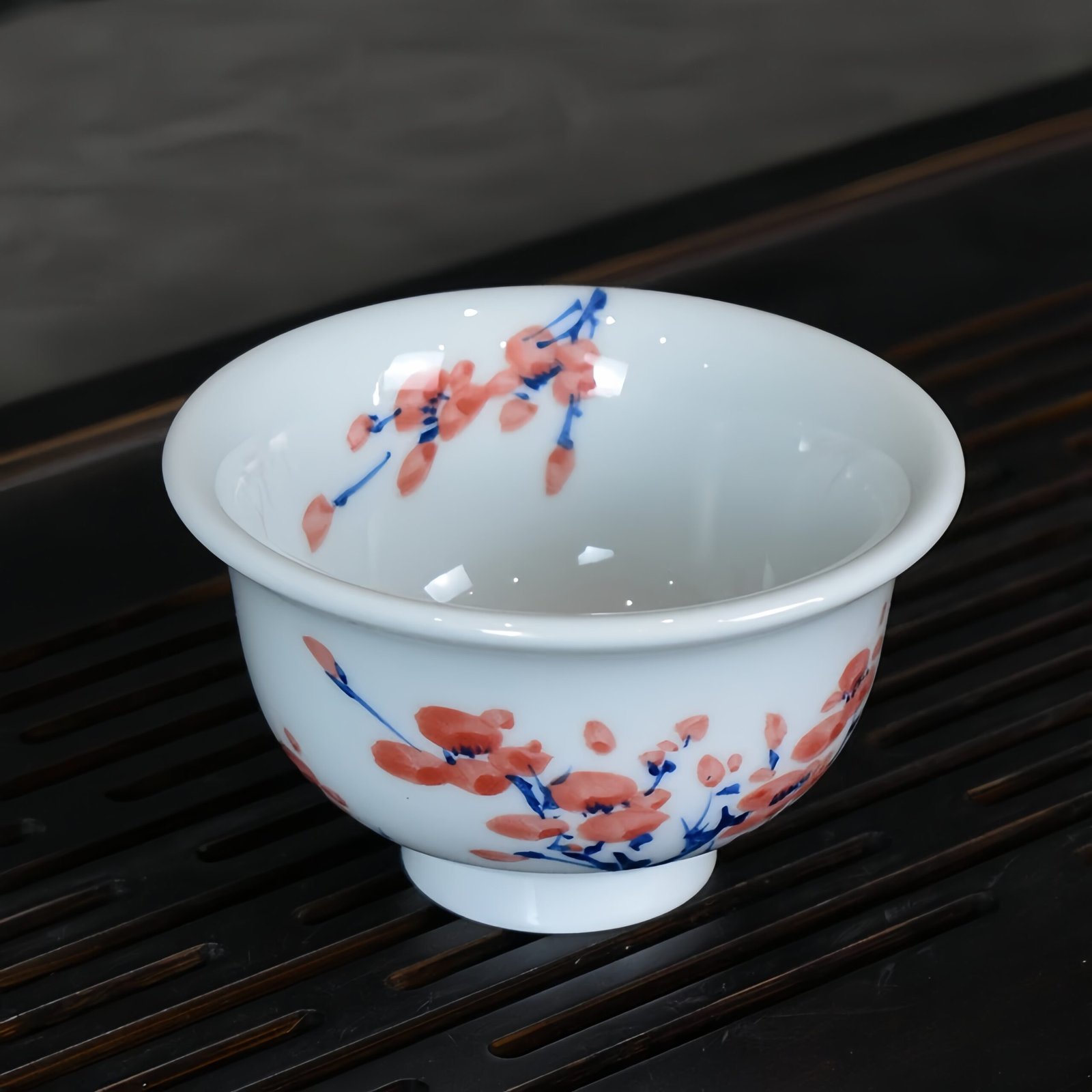 Handcrafted with meticulous precision, the Red Plum Master Teacup is 100% handmade and hand-painted, showcasing unparalleled artistry. Fired at high temperatures for a robust glaze, its surface is refined, smooth, and enduringly captivating. The delicate edges and harmonious proportions reflect a commitment to ancient ceramic techniques, infusing the teacup with timeless charm. Measuring approximately 8.2 cm in diameter and 4.8 cm in height, with a capacity of 90ml, this teacup is perfect for an enriched tea-drinking experience.